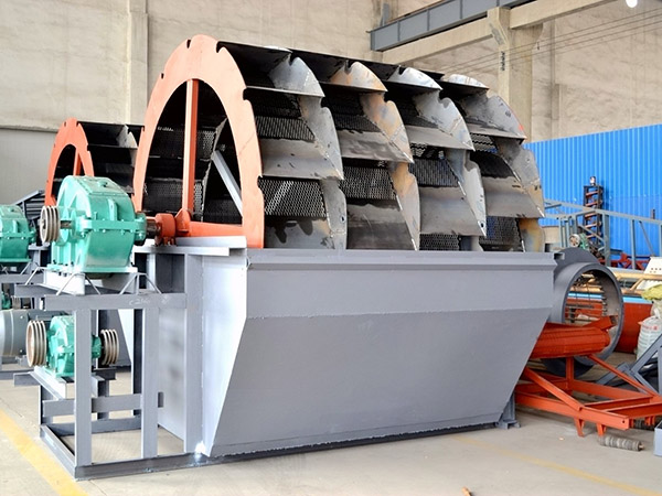 在輪斗洗砂機(jī)的工作過(guò)程中,砂石的翻滾和研磨主要依靠輪斗的旋轉(zhuǎn)來(lái)實(shí)現(xiàn)。具體來(lái)說(shuō),當(dāng)砂石通過(guò)給料設(shè)備進(jìn)入洗砂機(jī)的洗槽內(nèi)后,輪斗開(kāi)始旋轉(zhuǎn)。